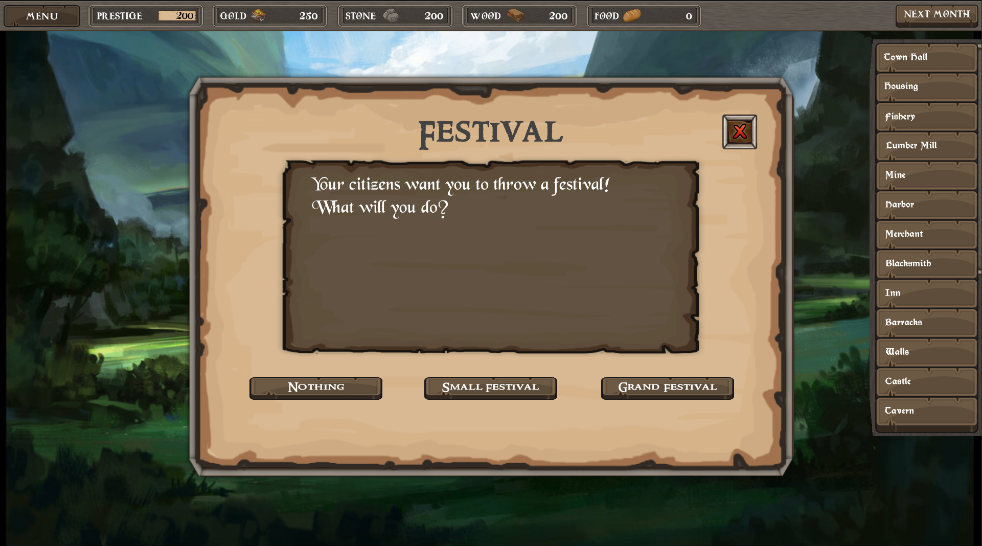 an idea to create a medieval builder game where you play as an heir of a king but are exiled from the kingdom and now